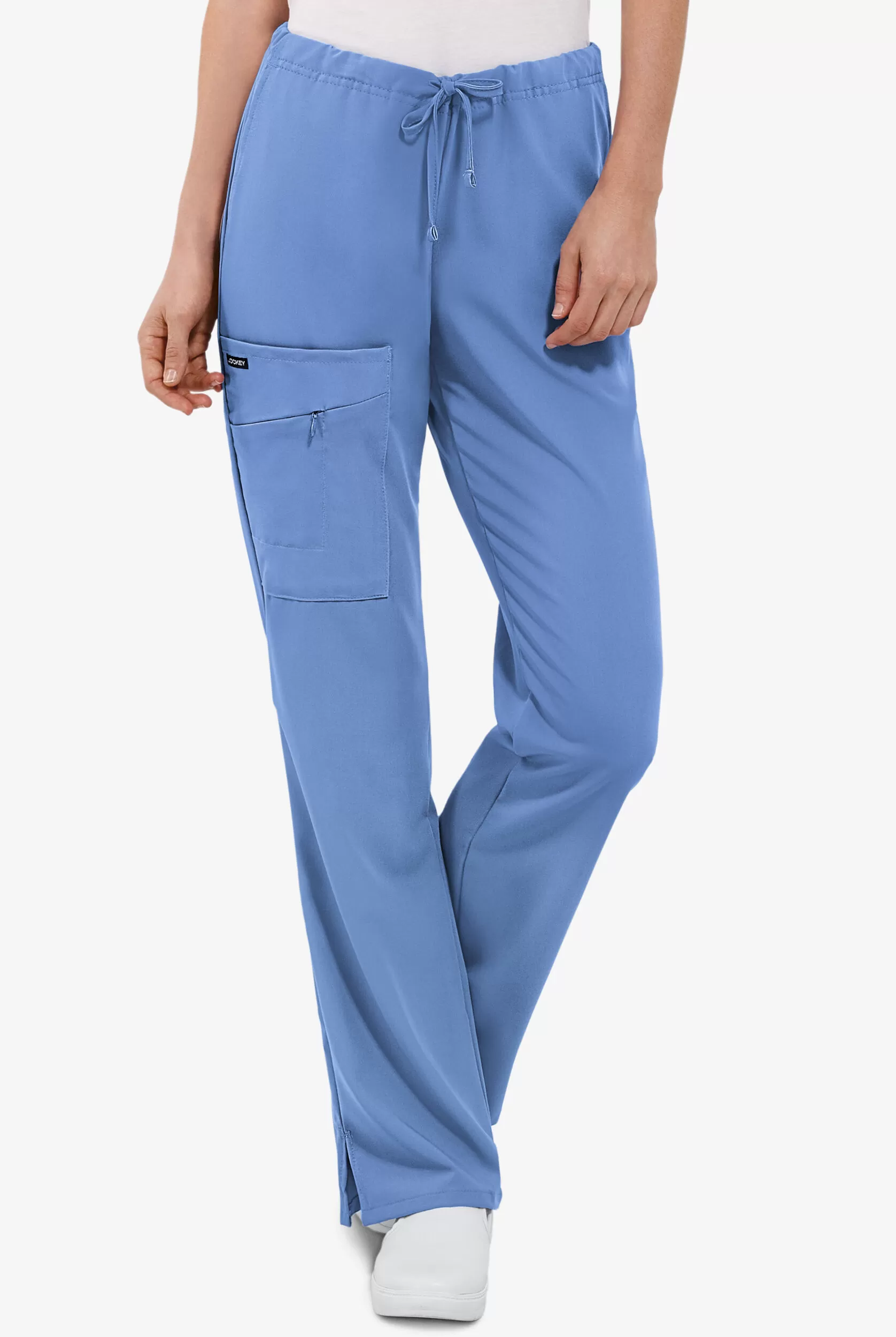 Review: 5 - "Good quality" by Donna Bobbitt, written onInformation:Jockey Scrubs Women's Favorite Fit Pant. Half Elastic Back and Half Drawstring Front for Maximum Comfort. Two Front Angled Pockets Plus Cargo Pocket With Signature Zipper Pocket Offer Incredible Security and Storage. Side Vents for Ease of Movement. Tri-Blend Multi Directional Stretch Fabric. 19" Leg Opening with a Slight Flare 31 1/2" Inseam Regular Size.