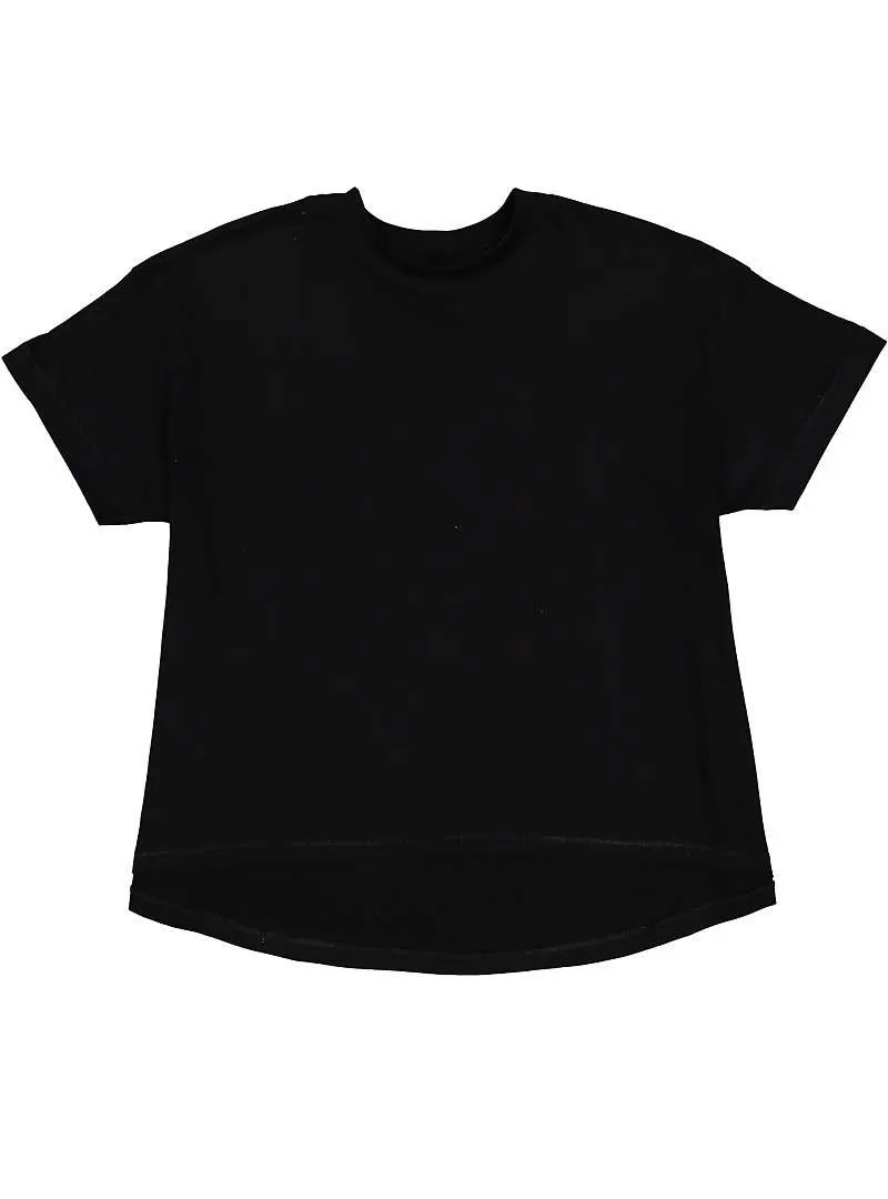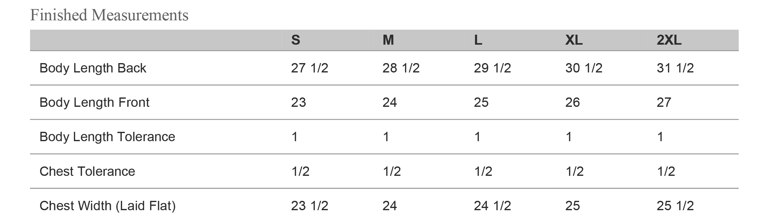 Features: Fashion ribbed collar • Self-fabric back neck tape • Drop shoulder construction • Hi-lo bottom hem • Blind stitch on sleeves and bottom hem • EasyTear™ label