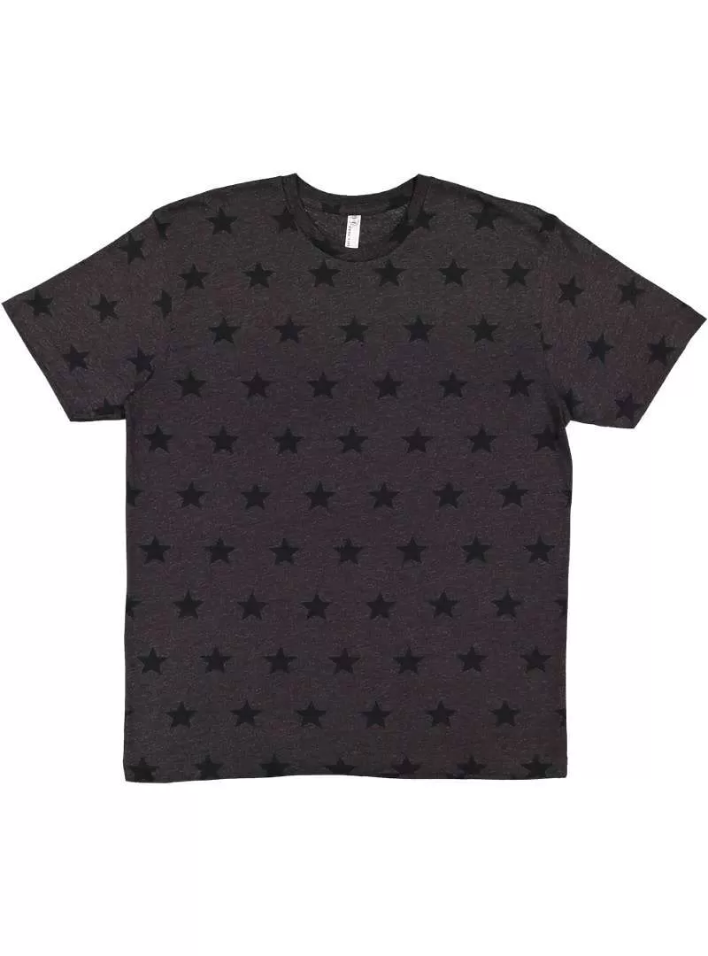 Fabrication: 4.5 oz. 60% combed ringspun cotton/40% polyester printed star vintage fine jersey • Natural Heather is 100% combed ringspun cotton