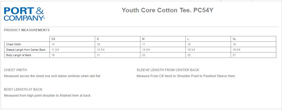 Short Description: Port & Company - Youth Core Cotton Tee. PC54Y