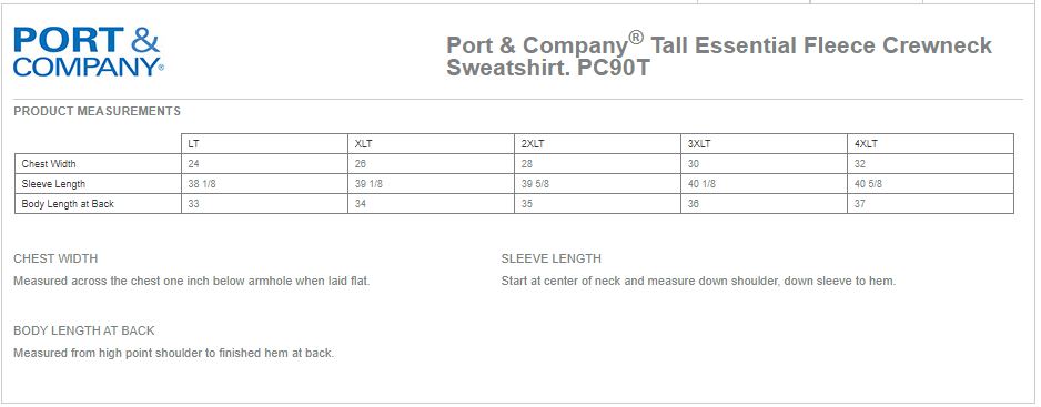 Short Description: Port & Company Tall Essential Fleece Crewneck Sweatshirt. PC90T