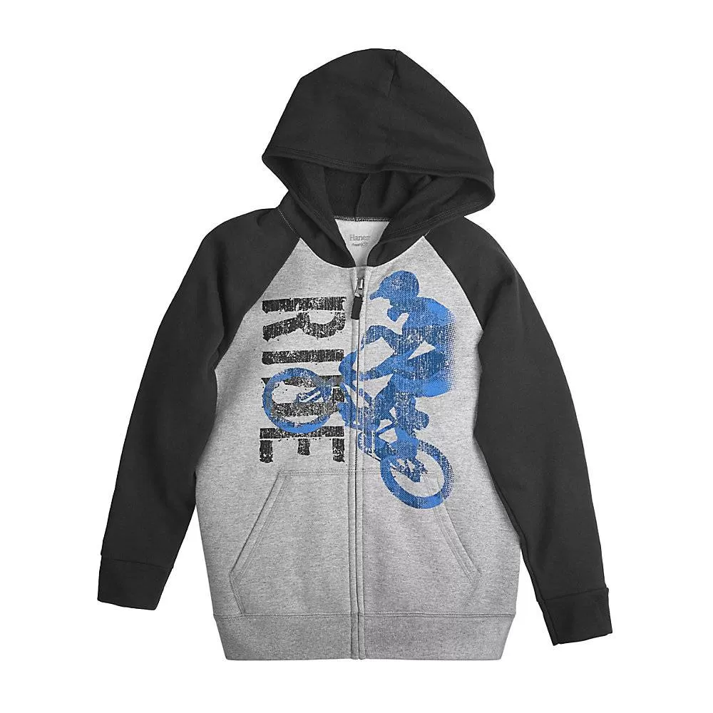 Short Description: Hanes Activewear Boy's Graphic Full Zip Hoodie with FreshIQ Style # D206 You love a hoodie that keeps him warm and fights off odor.