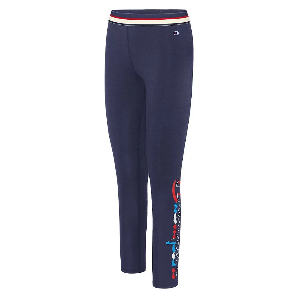Information:Get peak performance and the comfort of cotton with our Authentic Leggings.Double Dry technology wicks sweat and dries quickly for cooler comfort.Cotton-blend jersey with all-over stretch for ease.Heritage stripe chafe-resistant waistband with flatlock seams.28.5-inch inseam.Vertical multi-color Champion logo on left leg. C patch logo at hip.