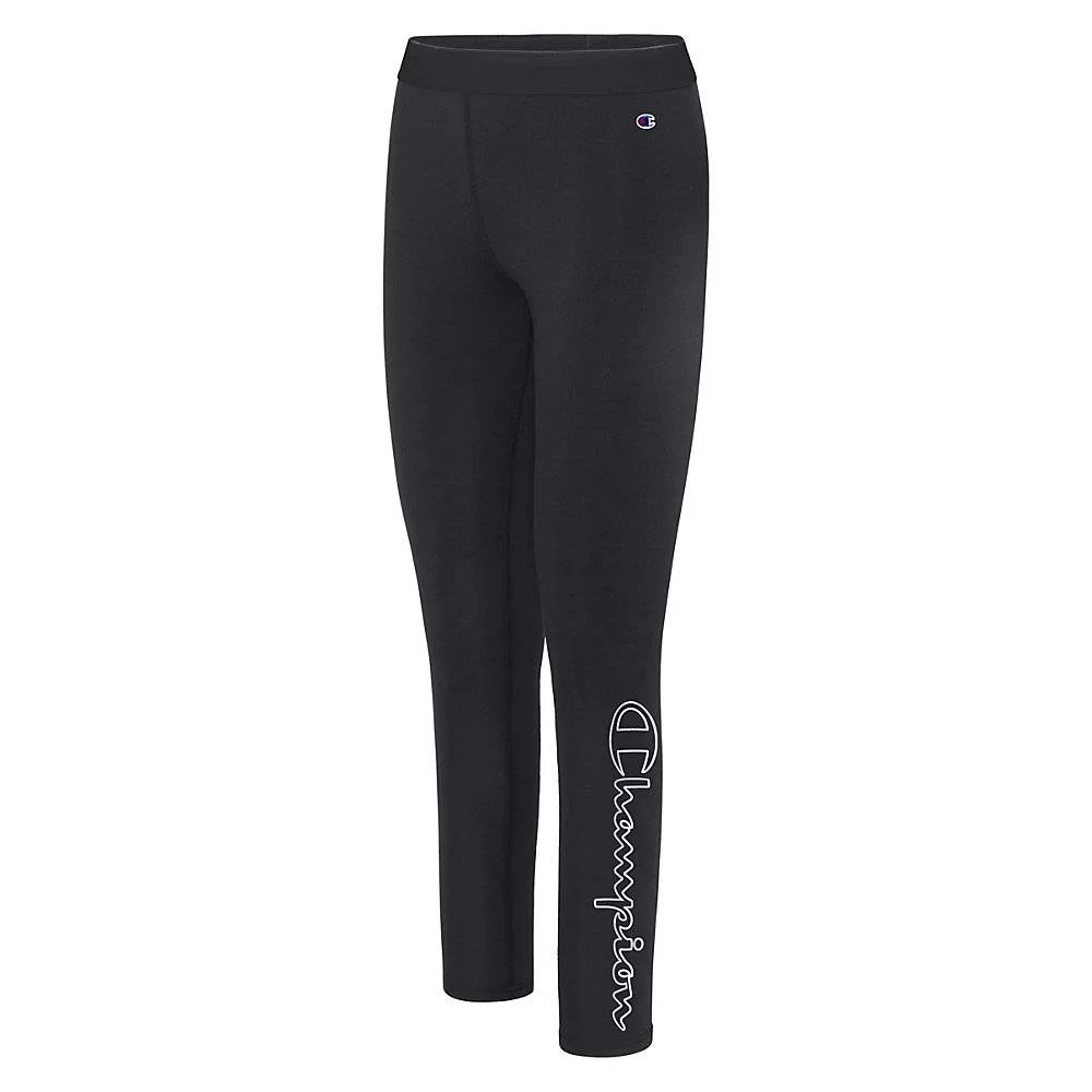 Information:Get peak performance and the comfort of cotton with our Authentic Leggings. Double Dry technology wicks sweat and dries quickly for cooler comfort. Cotton-blend jersey with all-over stretch for ease. Striped, woven chafe-resistant waistband with flatlock seams. 28.5-inch inseam. Champion outline logo on left leg. C patch logo at hip.