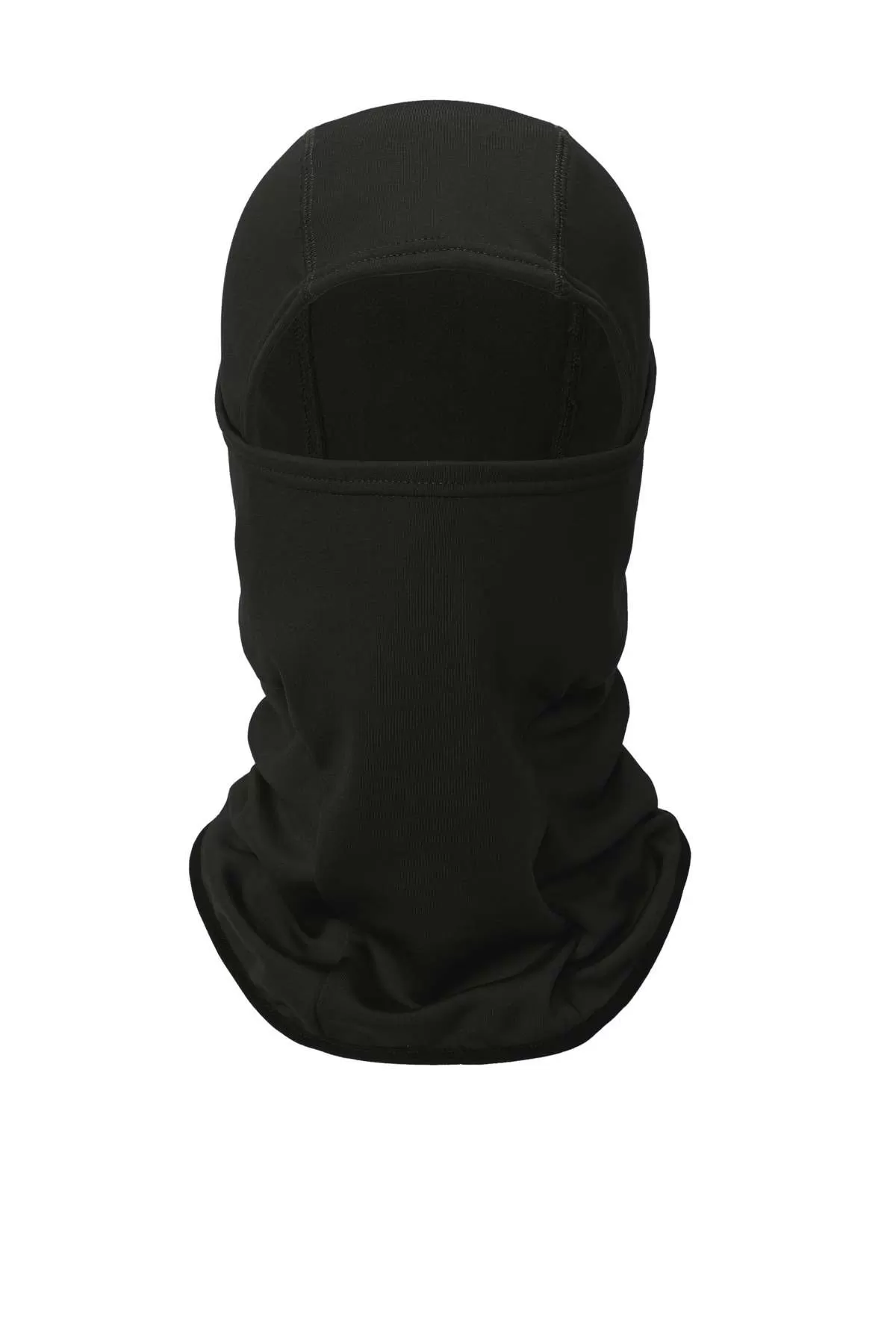 94/6 poly/spandex, Brushed fleece interior, Can easily stretch opening under nose and mouth for additional breathability, Articulated seams at neck and sides of face for fit.