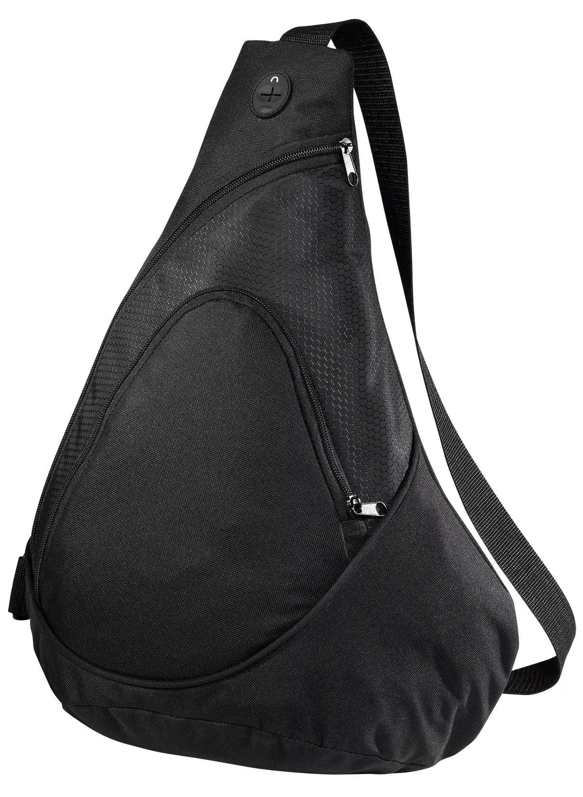 Information:Honeycomb texture adds interest to this budget-minded sling pack that includes an audio pocket with headphone exit port. 600 denier polyester 420 denier honeycomb polyester contrast Front zippered pocket Main compartment with zippered side entry Dimensions: 17 h x 13 w x 6 d; Approx. 1 326 cubic inches Note: Bags not intended for use by children 12 and under. Includes a California Prop 65 and social responsibility hangtag.