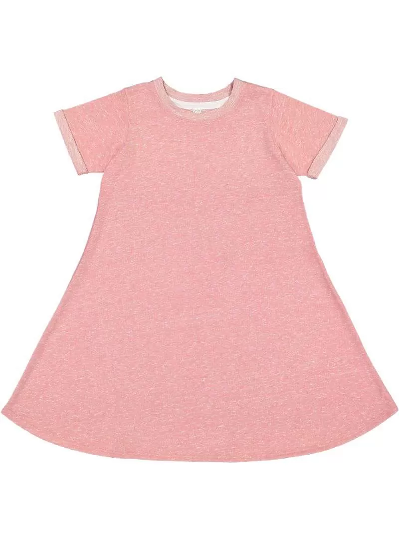 Twirl through any season in the Youth Girls' Harborside Mélange French Terry Twirl Dress. The mélange effect on the body and sleeves pairs perfectly with the reverse loop texture on the collar and rolled sleeve design, offering an elevated basic with tons of visual value. The white cotton twill back neck tape is the perfect finishing touch.