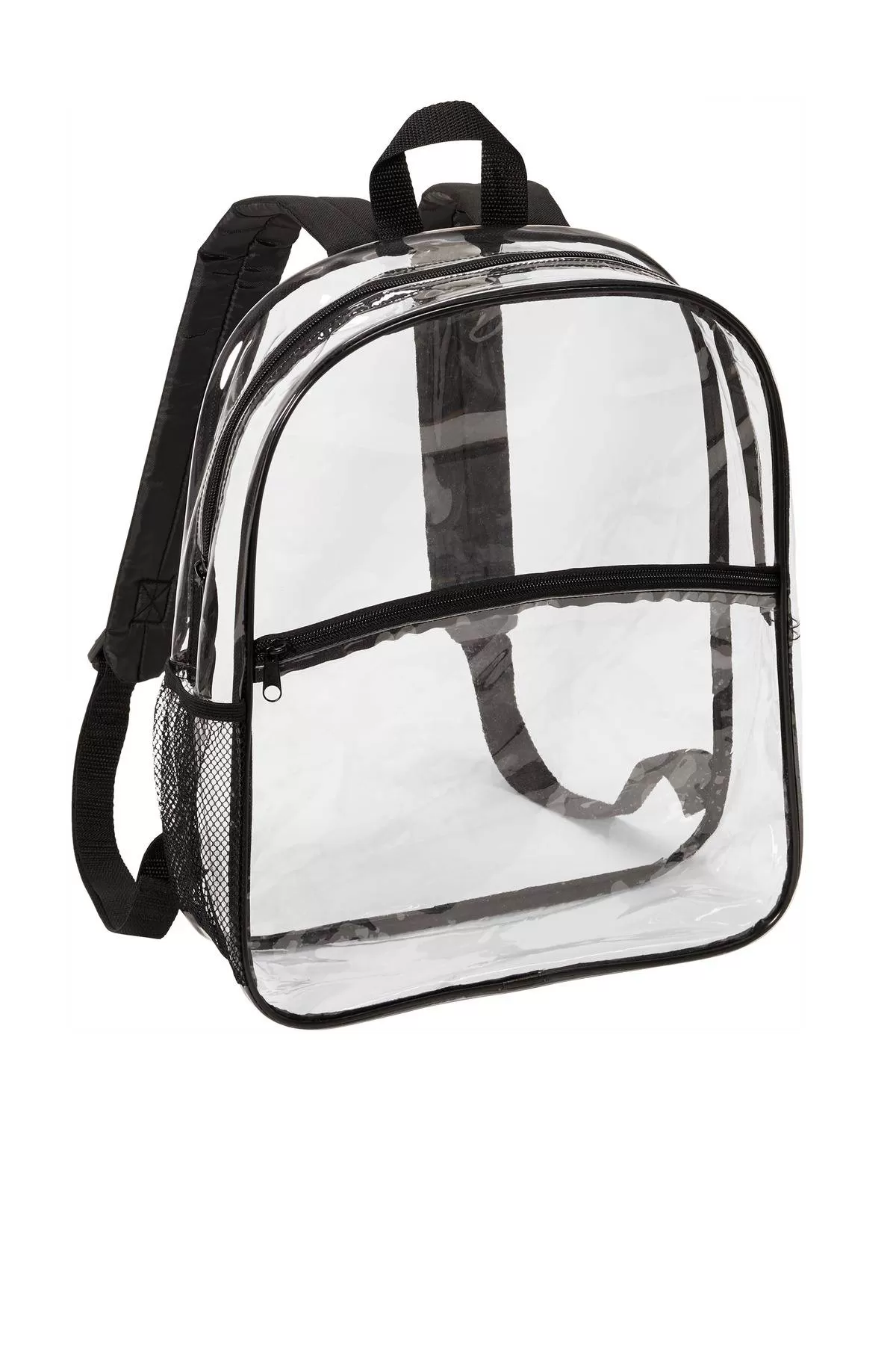 Information:Designed to meet the clear bag policies for stadiums, concerts and events, this pack is also useful in schools, airports and high-security workplaces. Clear PVC Polyester straps and trim Zippered main compartment Zippered front pocket Adjustable, padded shoulder straps Mesh side pocket Dimensions: 15'h x 12'w x 4.25'd; Approx. 765 cubic inches Note: Bags not intended for use by children 12 and under.