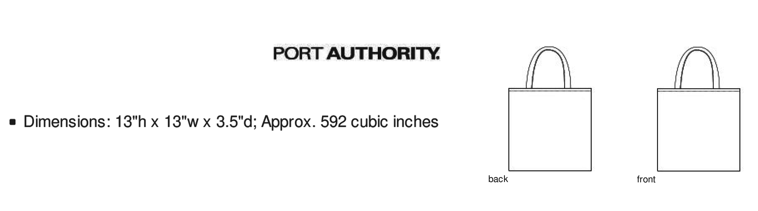 Information:12-ounce, 100% cotton canvas, Self-fabric handles, Gusseted bottom for additional depth, Dimensions: 13'h x 13'w x 3.5'd; Approx. 592 cubic inches, Note: Bags not intended for use by children 12 and under.