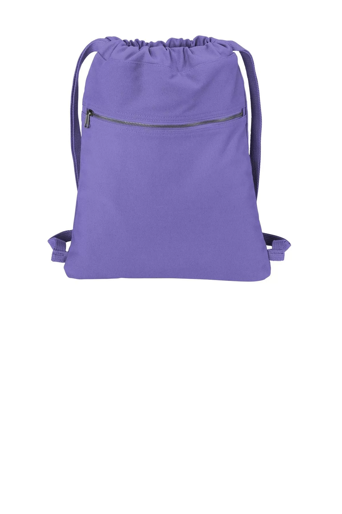 Information: 12-ounce, 100% washed cotton Dyed-to-match webbing cinch straps Metal zippered front pocket Dimensions: 17.5'h x 14'w; Approx. 245 cubic inches Note: Bags not intended for use by children 12 and under.