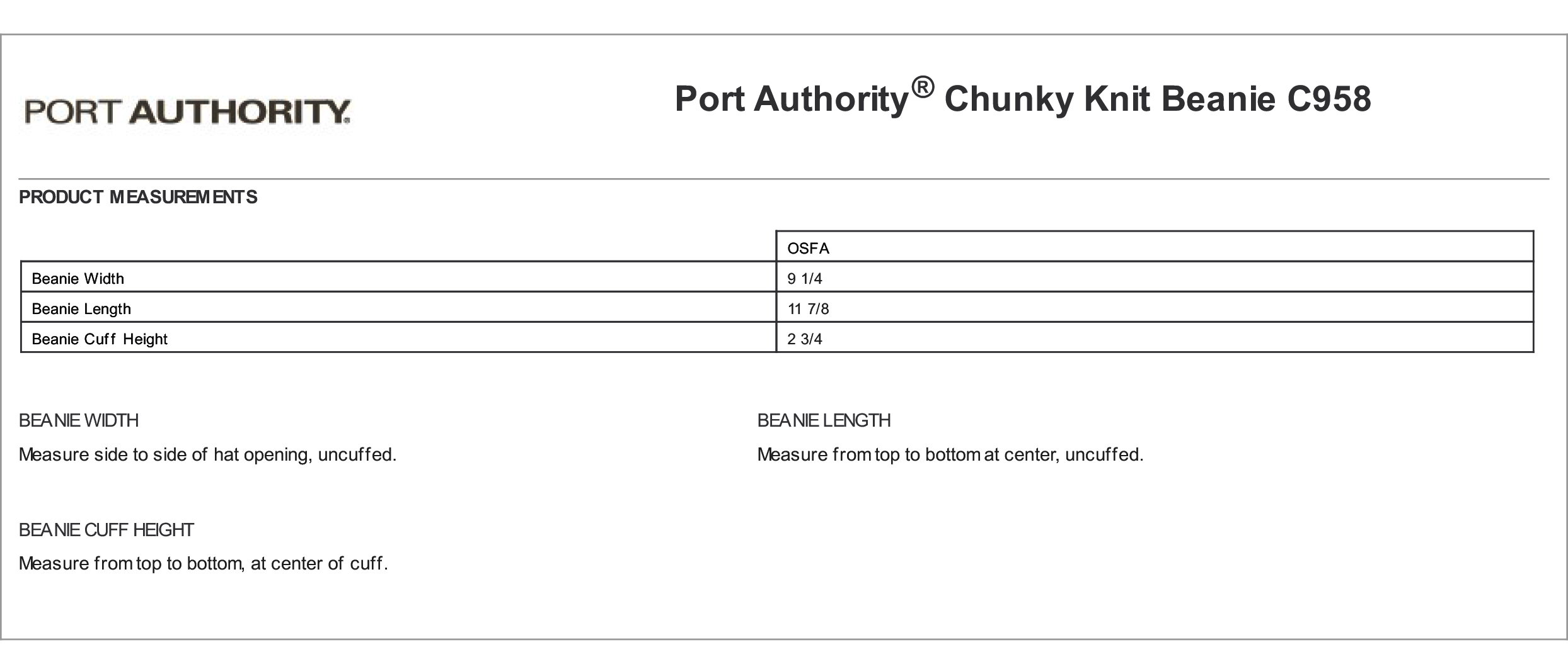 $18.48 $13.86 Save Up to 25% 01/21/2027 New In stock! Order now! https://ns1.apparelshopusa.com/port-authority-chunky-knit-beanie-252459.html