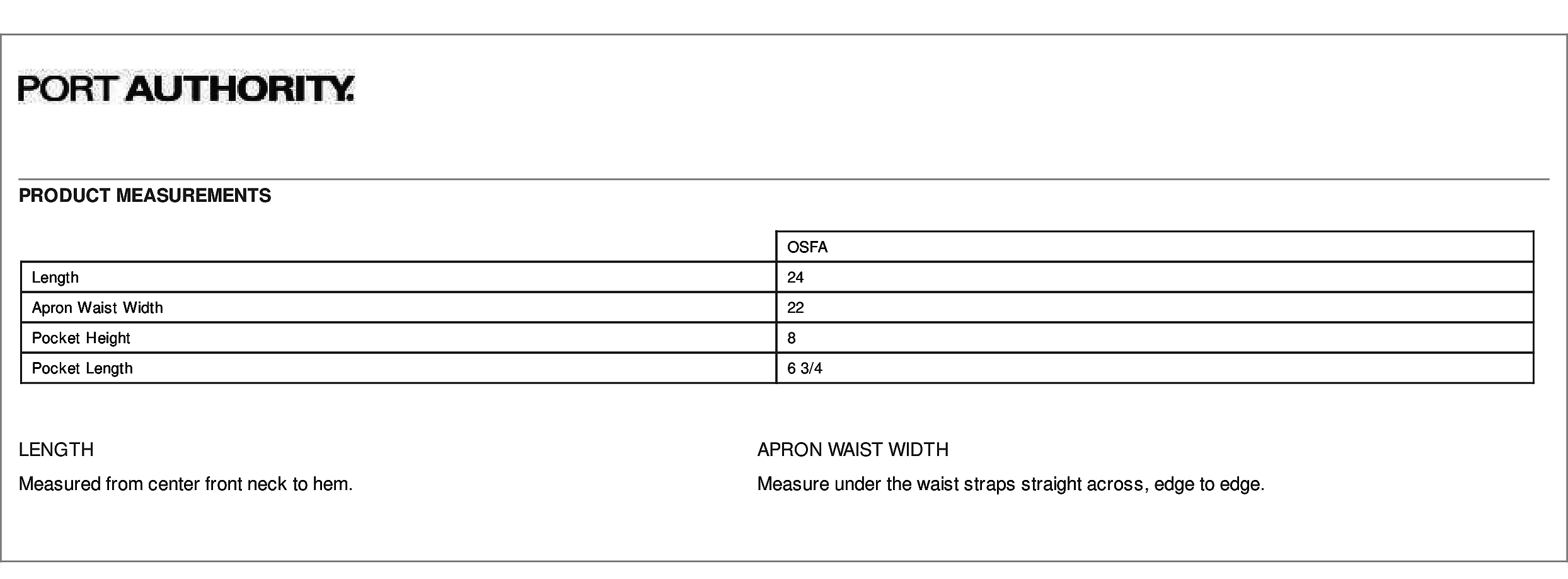 Review: 5 - "Recommended" by Franklen VanDieren, written onInformation:Stay looking neat and clean in this durable apron that features two easy-access pockets. 7-ounce, 65/35 poly/cotton twill Adjustable neck strap Two front patch pockets, pen pocket Color-coordinates with CP80, C914 and CP45 caps Measures: 22'w x 24'l